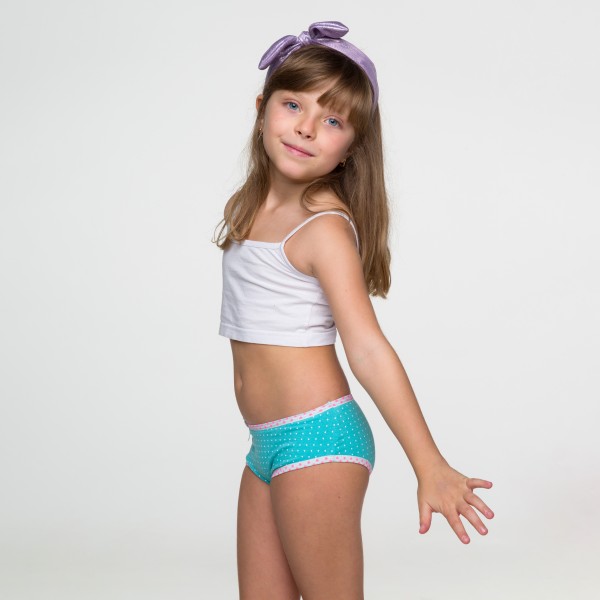 Calçinha Baby Estampada Poá na cor Verde Esmeralda em algodão egípcio com viés de elastano com poliamina. Lateral e costas maiores, modelagem super confortável.