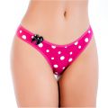 Fio Dental confeccionado em algodão egípcio na cor Rosa Pink. Modelo possui estampa em Silk Poá e detalhe em laço na lateral da frente da peça. Ideal para o seu dia a dia, proporcionando conforto e bem estar.