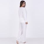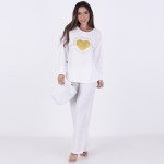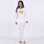 Pijama Longo em Algodão e Poliéster . Composto por duas peças, o modelo é ideal para boas noites de sono. A blusa apresenta decote em "U", mangas longas e detalhe de estampa em silk e Strass. Já a calça, em modelagem básica, possui elástico e fita para amarrar. Acompanha linda necessaire com strass.
