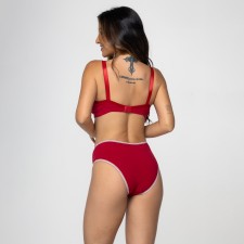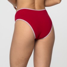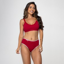 Esta calcinha na vibrante cor rubi destaca-se pelo seu design clássico e confortável. O detalhe do viés xadrez adiciona um toque de charme à peça, tornando-a ideal para o uso diário.